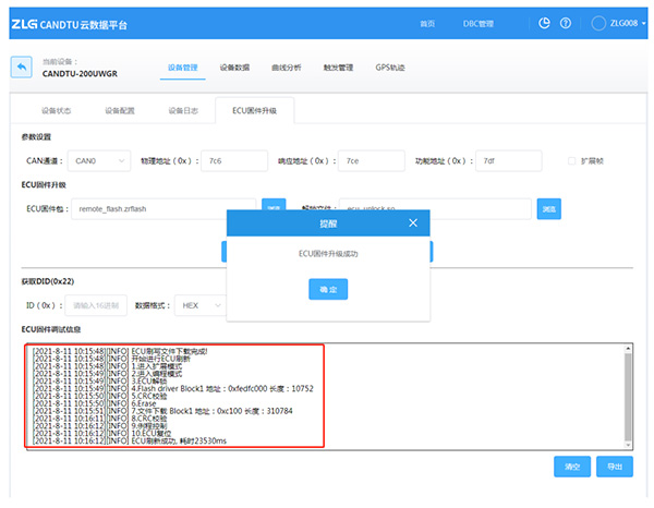 如图5所示,通过CAN智慧云平台可以查看ECU固件调试信息以及获取当前DID信息。